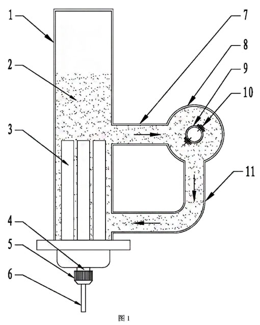電磁流量計的脫蠟裝置通過法蘭固定在管道內(nèi)。含蠟石油與水的混合物流過上述管道,PTC陶瓷加熱器3通電后釋放熱能,使位于PTC陶瓷加熱器3附近的導(dǎo)熱介質(zhì)2溫度升高,這部分溫度升高的導(dǎo)熱介質(zhì)2與位于箱體1上部的未被加熱的導(dǎo)熱介質(zhì)2發(fā)生熱交換,位于箱體1出口的導(dǎo)熱介質(zhì)2向上流動,經(jīng)**介質(zhì)通道7進入吸熱器8,使吸熱器8的外壁溫度升高在45℃左右,使粘附在吸熱器8外壁的石蠟涂覆層脫離。同時設(shè)置在吸熱器8內(nèi)的測量導(dǎo)管9外壁和電極10的溫度也隨之升高,使得位于導(dǎo)管9內(nèi)壁及電極10極掌面的溫度也被加熱到45℃左右,使粘附在導(dǎo)管9內(nèi)壁及電極10的石蠟涂覆層脫離。經(jīng)過熱傳遞后,吸熱器8內(nèi)的導(dǎo)熱介質(zhì)溫度降低。而位于第二介質(zhì)通道11內(nèi)的導(dǎo)熱介質(zhì)被PTC陶瓷加熱器3加熱后,溫度升高,與吸熱器8內(nèi)的導(dǎo)熱介質(zhì)形成溫差,使得位于吸熱器8內(nèi)的導(dǎo)熱介質(zhì)向第二介質(zhì)通道11流動。如此反復(fù)。這種導(dǎo)熱介質(zhì)的“微循環(huán)流動”采用了流體動力學的原理,替代了利用導(dǎo)熱循環(huán)泵使導(dǎo)熱介質(zhì)循環(huán)運動的現(xiàn)有技術(shù)。由于整個系統(tǒng)不必通過導(dǎo)熱循環(huán)泵來進行,節(jié)約了成本,同時還使得結(jié)構(gòu)更為簡單、保證了整個裝置的安全性和穩(wěn)定性。