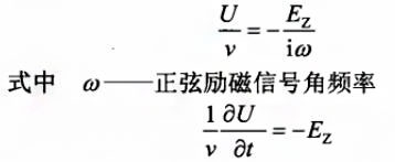 渦電場法的理論基礎(chǔ)為:電磁流量計測量過程中,交變的磁場將伴隨產(chǎn)生渦電場,該電場不受流速分布的影響,通過測量電磁流量計電極所在位置渦電場強(qiáng)度測取一次傳感器轉(zhuǎn)換系數(shù)。當(dāng)一次傳感器管段內(nèi)速度分布平坦時,對于正弦信號勵磁磁場的一次傳感器,有效區(qū)域內(nèi)任意點的速度v、電勢U以及渦電場強(qiáng)度在管段軸向方向的分量Ez具有如式,所示關(guān)系,對于矩形脈沖信號勵磁磁場則如式所示向