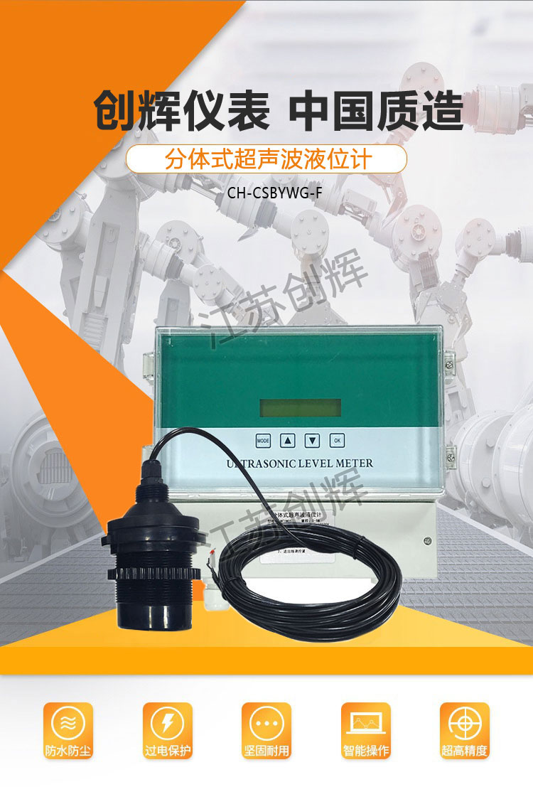 CH-CSBYWJ-F分體型超聲波液位計精度高、壽命長、穩定可靠、安裝維護方便等特點,適用酸、堿、鹽、防腐、高溫等各種領域。可通過4~20mA或RS485(Modbus協議或其他定制協議)連接到顯示表或各種DCS系統中,為工業的自動化運行,提供實時的液位數據。