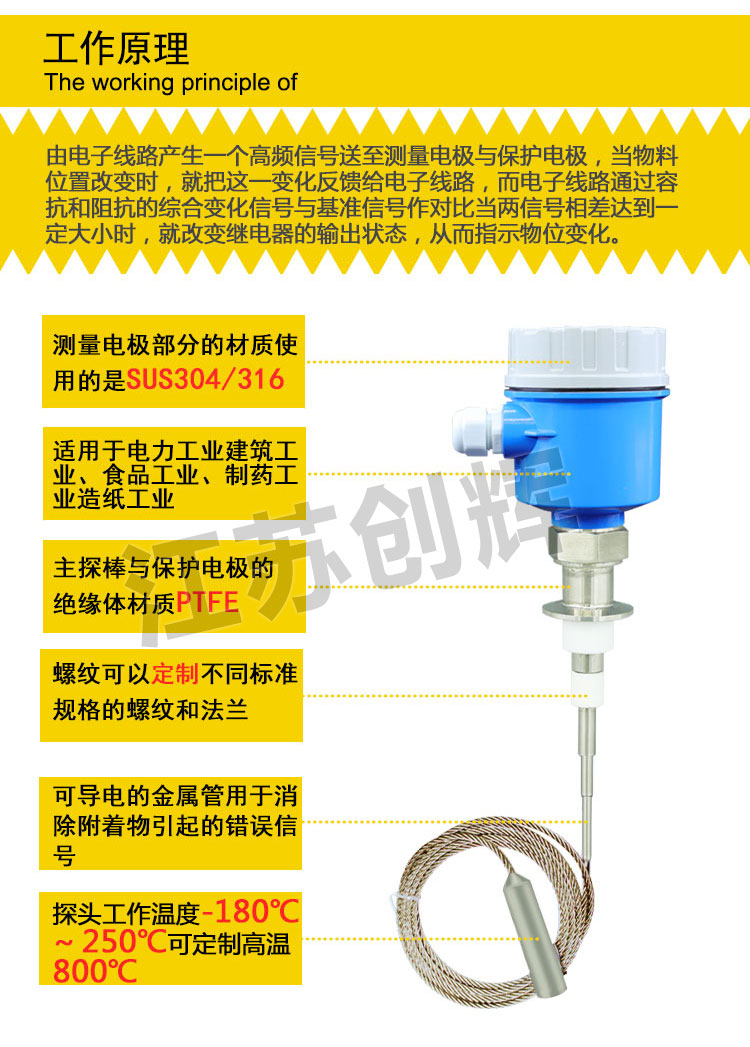 CH-CPDN11R纜繩型射頻導納料位開關:適用于大型罐體和料倉,采用垂直安裝的方式,有效避免物料的側面沖擊。