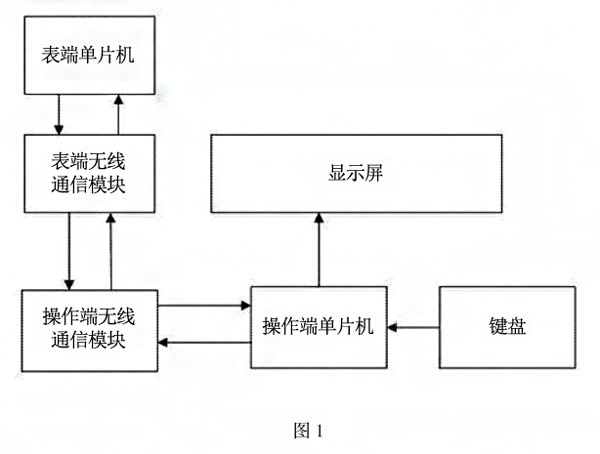 需要設置電磁流量計的表內參數時,操作人員通過鍵盤向操作端單片機輸入待設置的參數值,操作端單片機收到輸入的參數值后,依次通過操作端無線通信模塊、表端無線通信模塊將參數值發送給電磁流量計內置的表端單片機,表端單片機即根據收到的參數值修改表內相關參數,并依次通過表端無線通信模塊、操作端無線通信模塊將修改結果反饋給操作端單片機,操作端單片機將收到的反饋結果輸出至顯示屏顯示。
