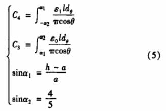 如圖3所示,管中液體將測量管分為上、下兩部分,其中空氣的介電常數為Eo,流體的介電常數為E1,村里的介電常數為E2,根據電容式傳感器模擬計算方法可知: